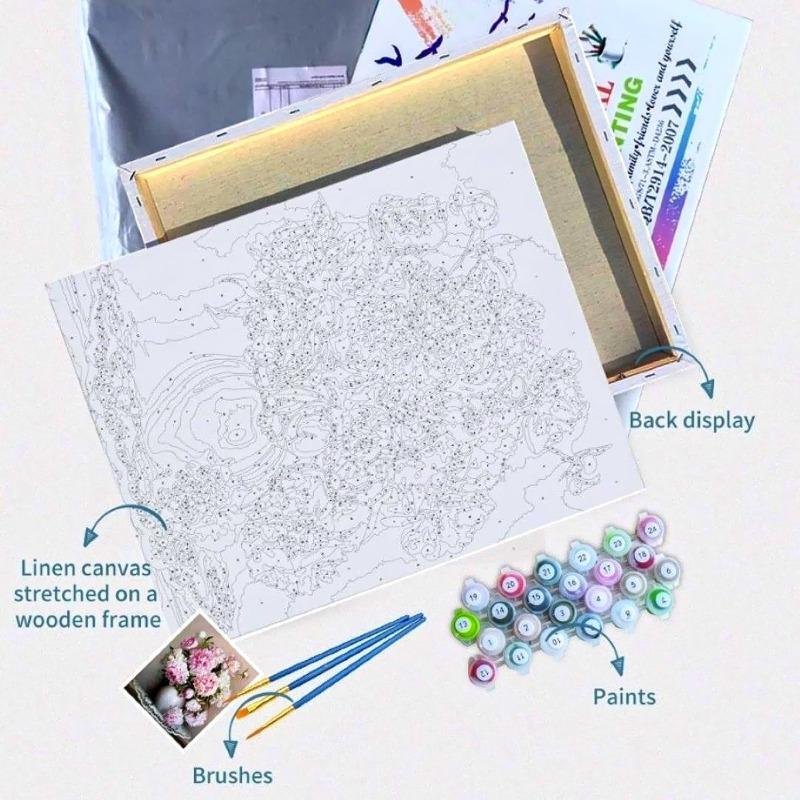 Our Number Painting Kit comes with everything needed to make the painting . Ready to hang once you finish it as already stretched on a wooden frame.